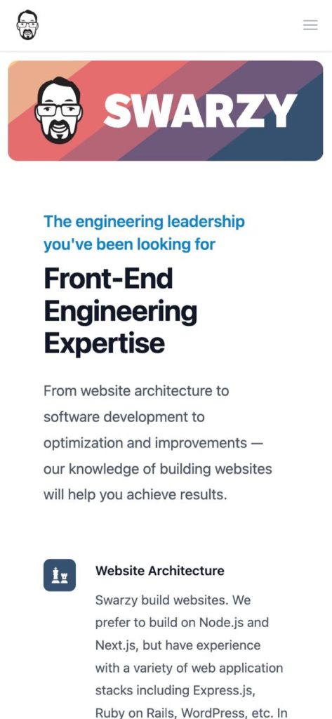 The Swarzy website has been revamped with updated information about the services provided, a showcase of projects for recent clients, and links to apps Swarzy has built.
